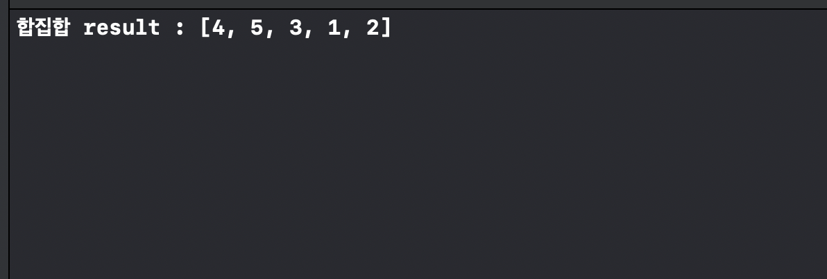 다만, 비정렬의 특성을 지닌 Set을 반환하기 때문에 합집합의 순서는 항상 다를 수 있습니다.