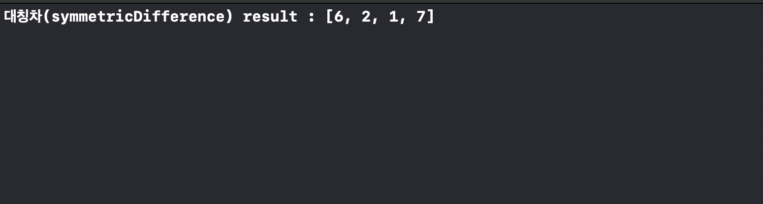 - symmetricDifference(formSymmetricDifference)는 대칭차 연산