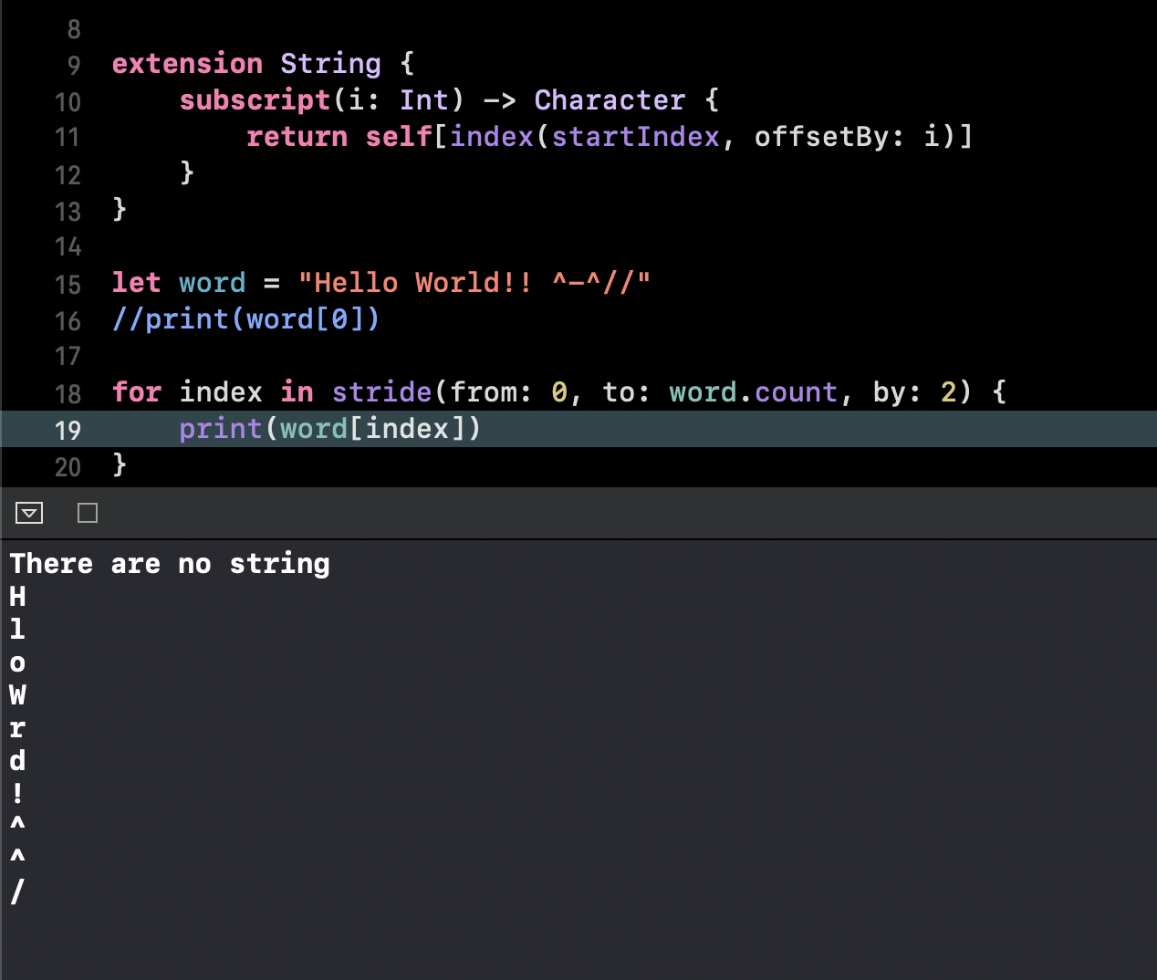 이러한 이유로 Swift에서는 5번째에 어떤 문자가 있을지를 한번에 알 수 없습니다. - 위의 extension 코드를 보면, 인덱싱을 할때 startIndex부터 시작하여 원하는 위치에 도달할때까지 한단계씩 카운팅합니다. 원하는 위치에 도달할때까지 말이지요.