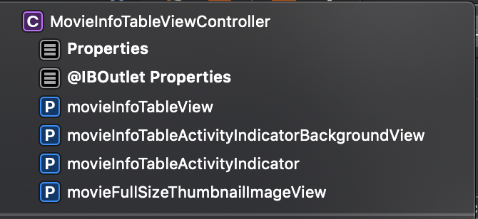 위와같이 MovieInfoTableViewController라는 Swift언어 상 클래스가 있습니다. 위 클래스의 간략한 설명을 주석으로 달아보겠습니다.