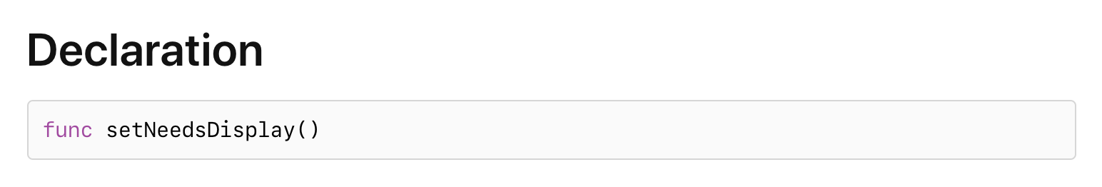 해당 메서드는 특정 UIView의 모습을 업데이트하고 싶을때, 다음 UIView의 업데이트 주기에서 draw(CGRect) 메서드를 통해 뷰를 다시 그려줘야 함을 시스템에 알려줍니다.