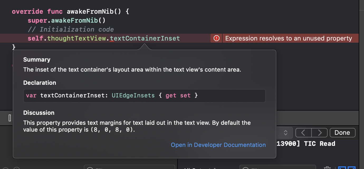 방법은 매우 간단합니다! awakeFromNib Initialization 함수 내에 텍스트뷰의 textContainerInset을 접근해줍니다.
