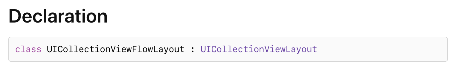 UICollectionViewFlowLayout은 클래스로 되어있으며, UICollectionViewLayout을 상속받습니다.