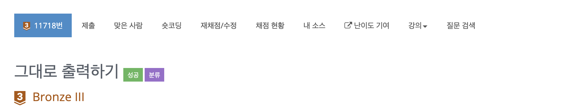 그렇게 결과적으로 해당 문제, "그대로 출력하기"를 풀 수 있었습니다. 그렇게 코드 제출 결과는 아래와 같습니다. 🤗