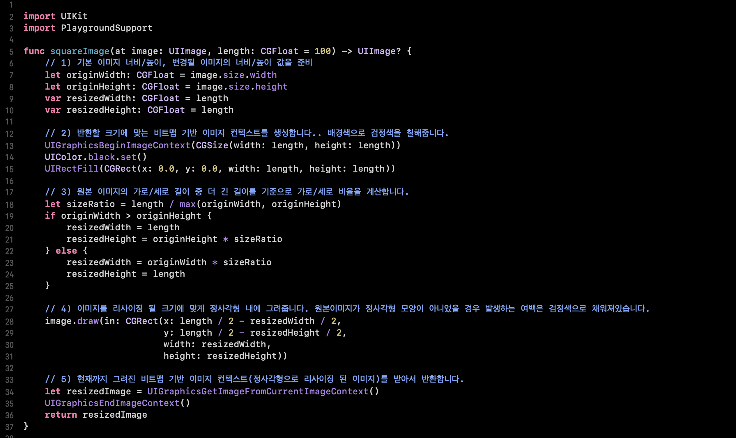 squareImage 메서드, 플레이그라운드 전체코드