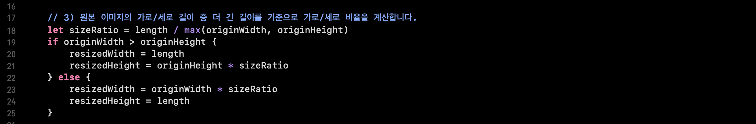 원본 이미지의 너비가 길 경우, 너비를 기준으로, 높이가 길 경우 높이를 기준으로 비율을 조절해서 연산하고 있습니다.