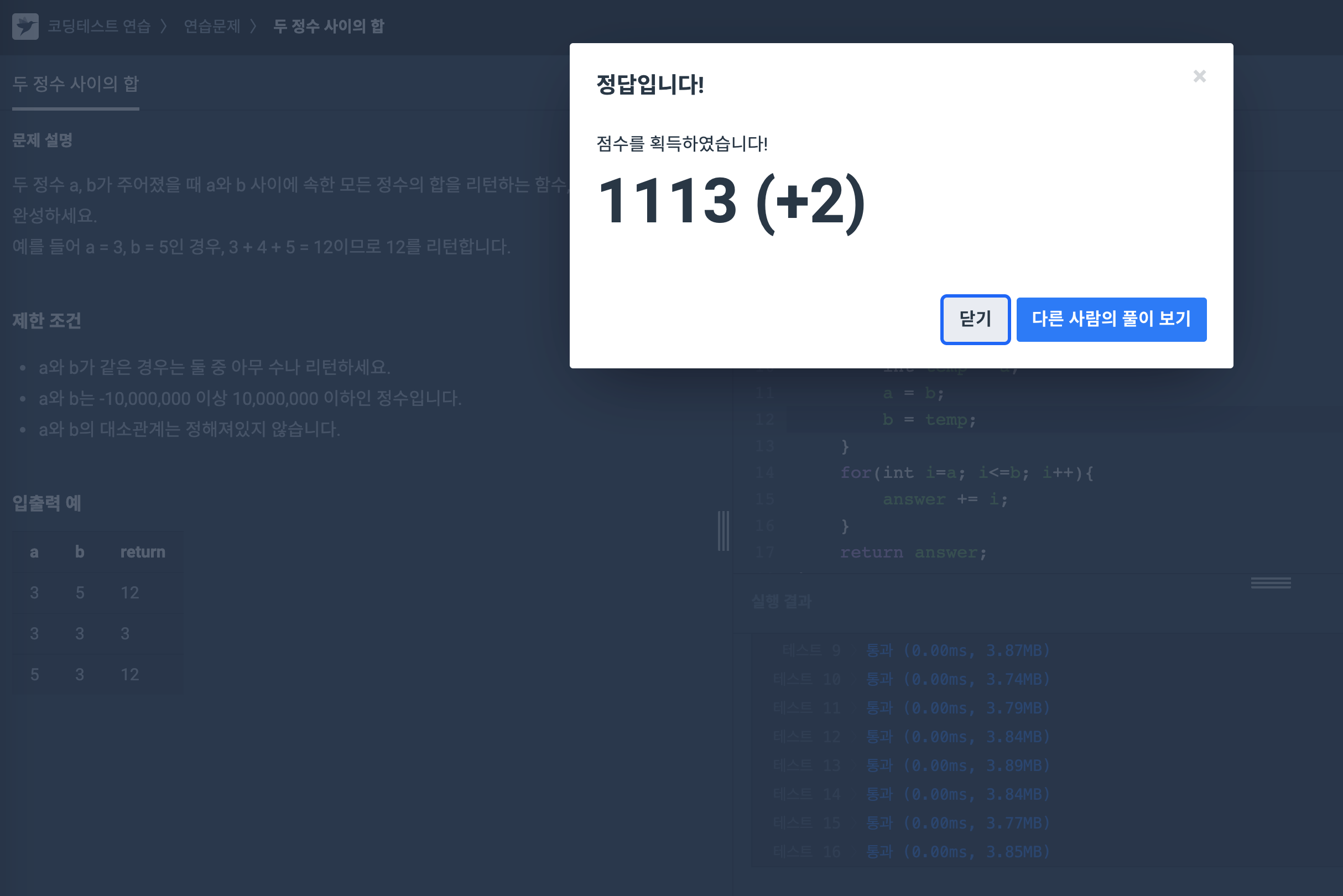 이것도 쉽죠... a ~ b사이의 정수의 합을 구하면 끝나는 왕초보 문제... 문제를 풀다보니 문자열을 다루는데 숙련도가 많이 필요할 것 같네요. 일반적으로 거진다 사용하는게 벡터, 배열이었거든요.