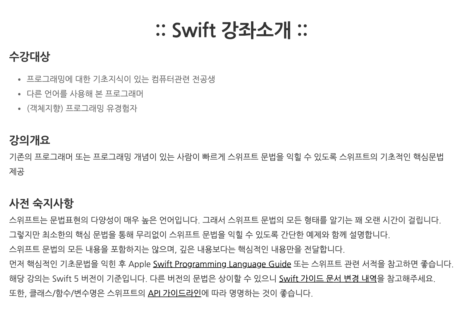 iOS 프로그래밍 문법에 대한 기본적인 학습을 할 수 있고, 퀴즈까지 있으니 재밌게 iOS 개발 독학공부가 가능합니다. 또한 무료로 수강할 수 있으니 더 좋은 것 같습니다.