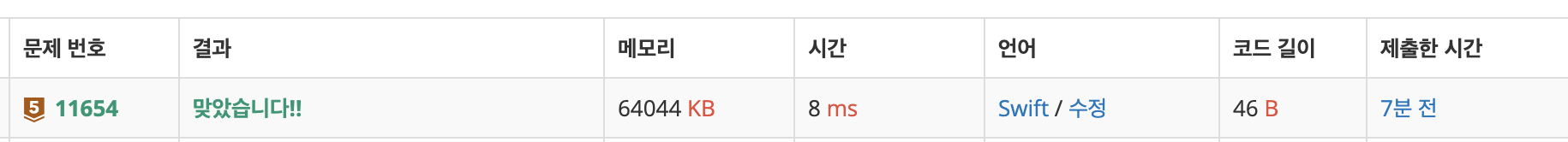 오늘은 백준 11654번문제, 아스키코드를 풀어보면 swift언어로 아스키코드를 출력하는 방법을 알아보도록 하겠습니다.
