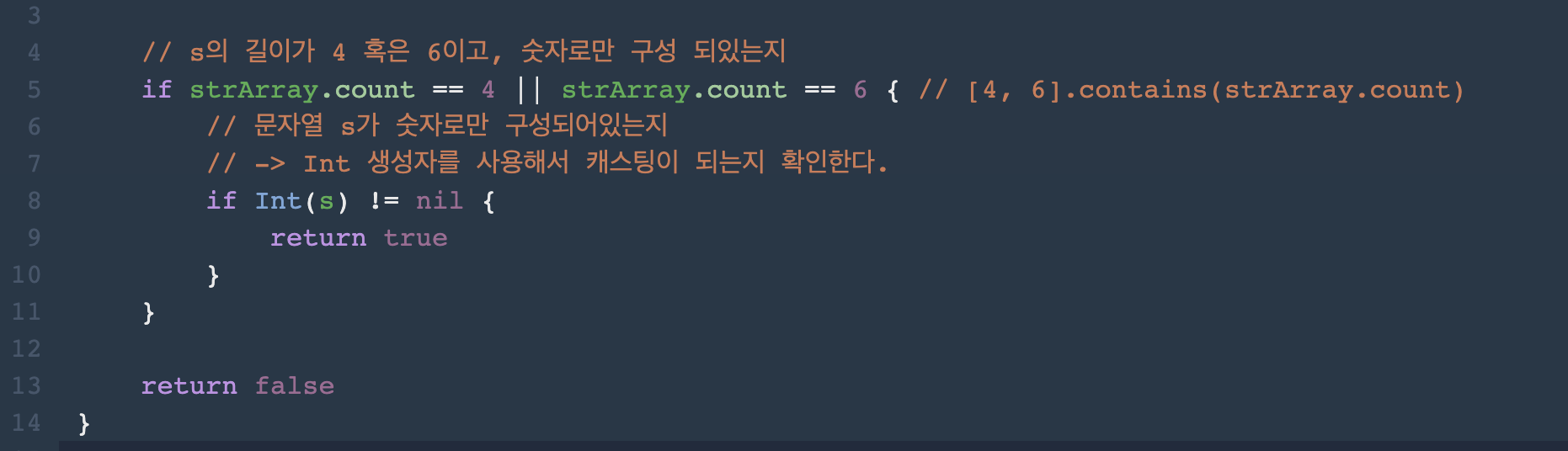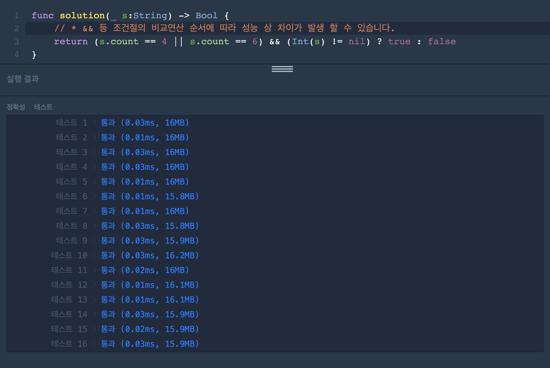 프로그래머스 문자열 다루기 Swift 코드 구현