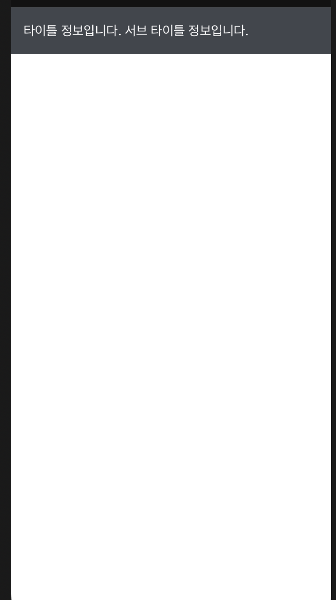 오늘의 예제입니다. 상단에 표출되는 문구는 하나의 UILabel로 지정되어있습니다. 해당 텍스트 중에서 "타이틀 정보입니다.", "서브 텍스트 정보입니다." 의 문자 크기, 폰트설정을 따로 하고 싶은 상황입니다.