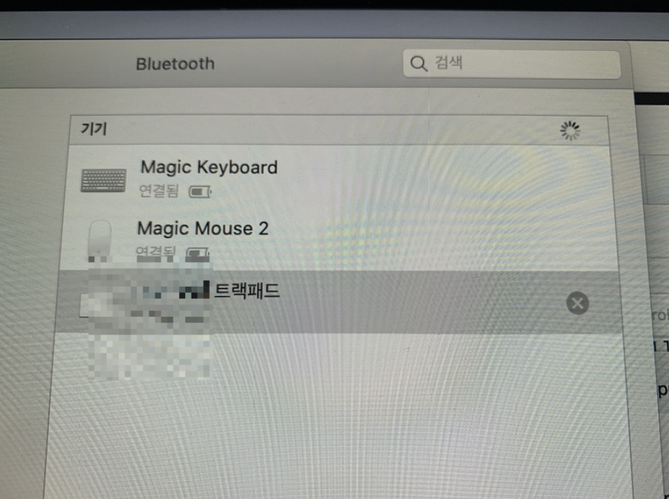 그렇게 연결 시도 후 문제없이 연결이 된 모습입니다. 이제 드디어 정말 정말로 애플 매직트랙패드2를 사용해보게 되었네요.