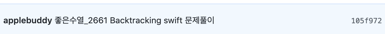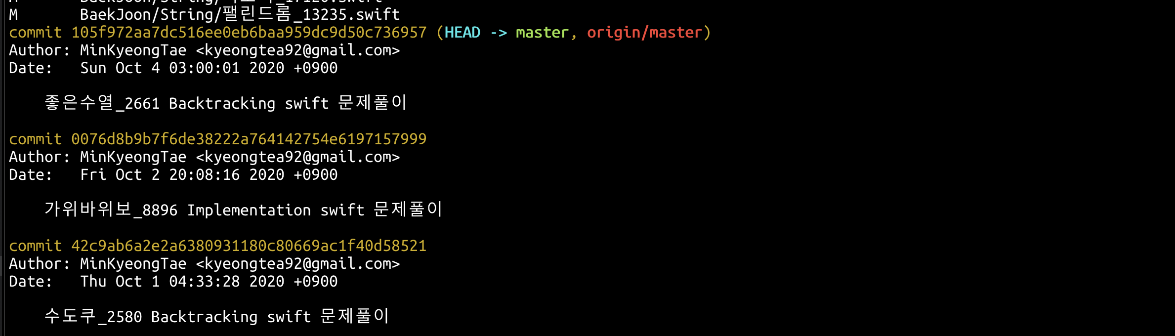 git log 로 git 커밋 기록을 확인합니다. 제가 수정하고자 하는 커밋은 "좋은수열_2661 ... " 입니다.