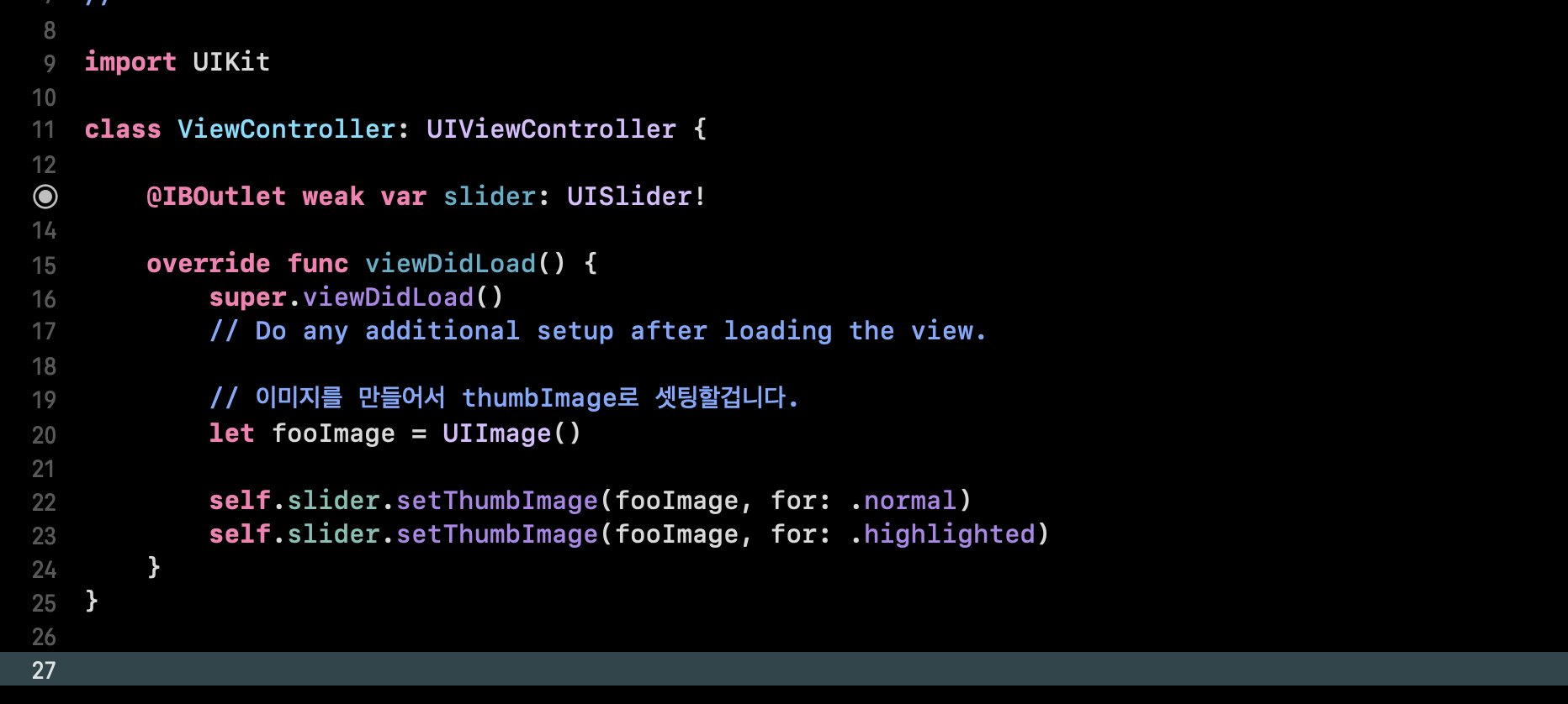 이제 UISlider의 동그란 ThumbView 이미지를 UIView로부터 만들어서 설정해보겠습니다.