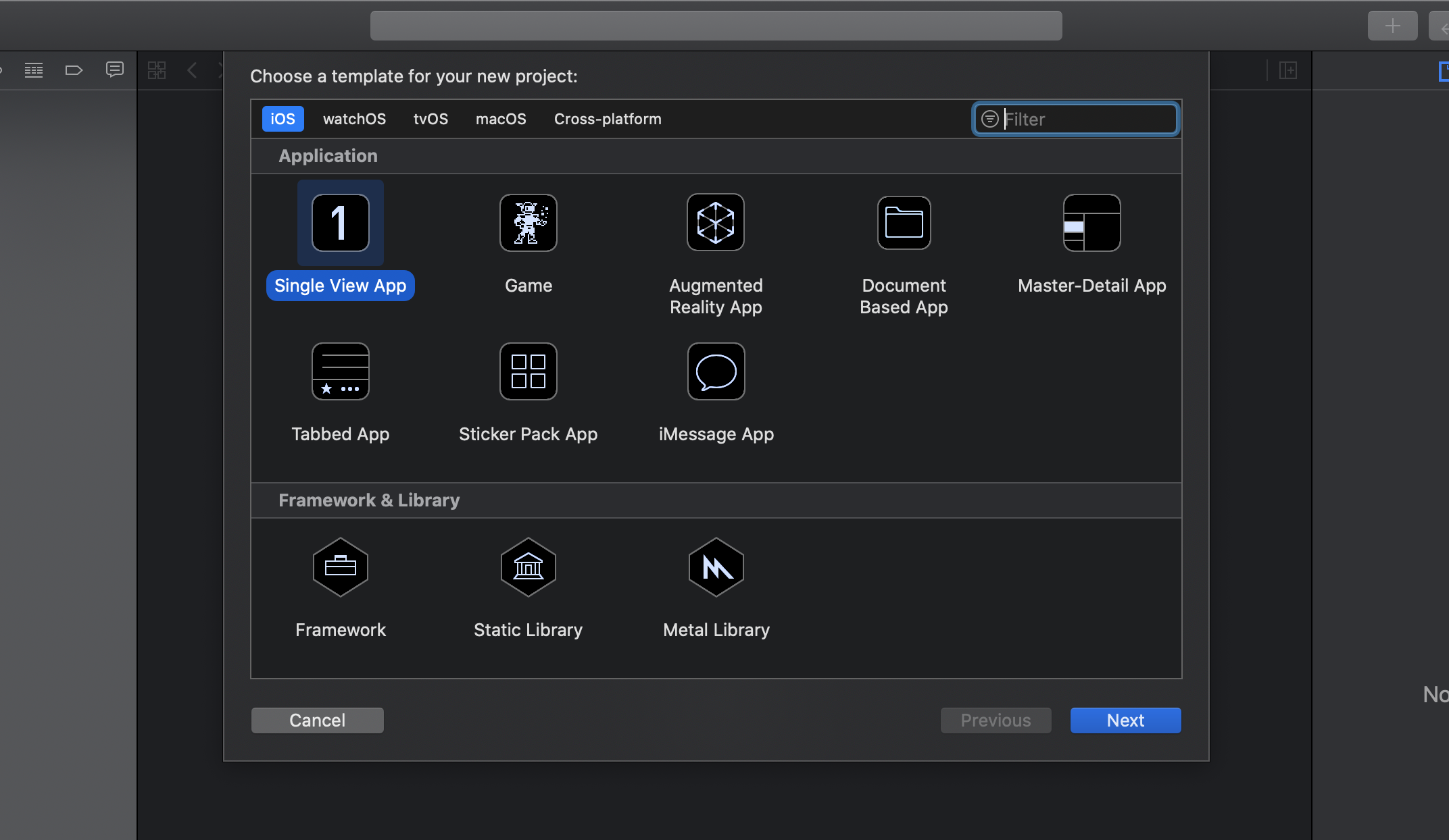 먼저 XCode를 실행하신 뒤, Command + Shift + N을 통해 새로운 프로젝트를 만들어 보겠습니다. 간단한 예제를 만들거니, Single View App을 선택하시면 되구요.