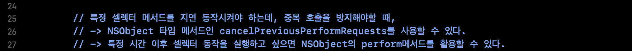 NSObject 메서드 활용, 지연 호출메서드 중복 호출 방지하는 방법 코드예시 ▼
