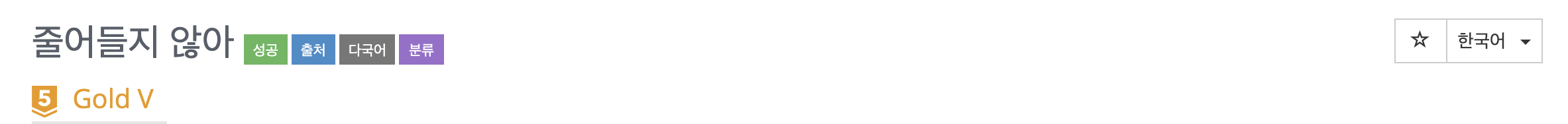 줄어들지 않아 문제는 골드5로, 중급 수준의 알고리즘 문제입니다.