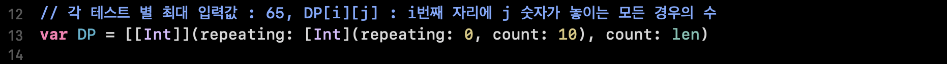 바로 swift 코드로 DP(Dynamic Programming)방식을 사용해 구현해보도록 하겠습니다.