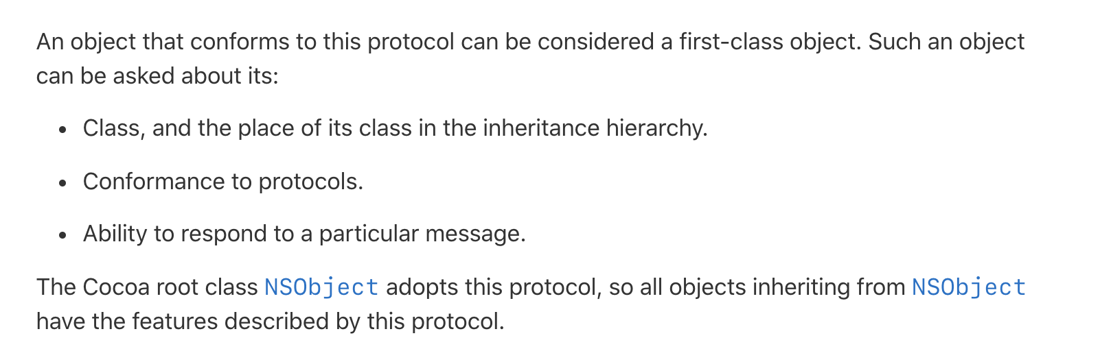 NSObjectProtocol을 채택하면 갖게 되는 특성을 요약하자면, 아래와 같습니다.