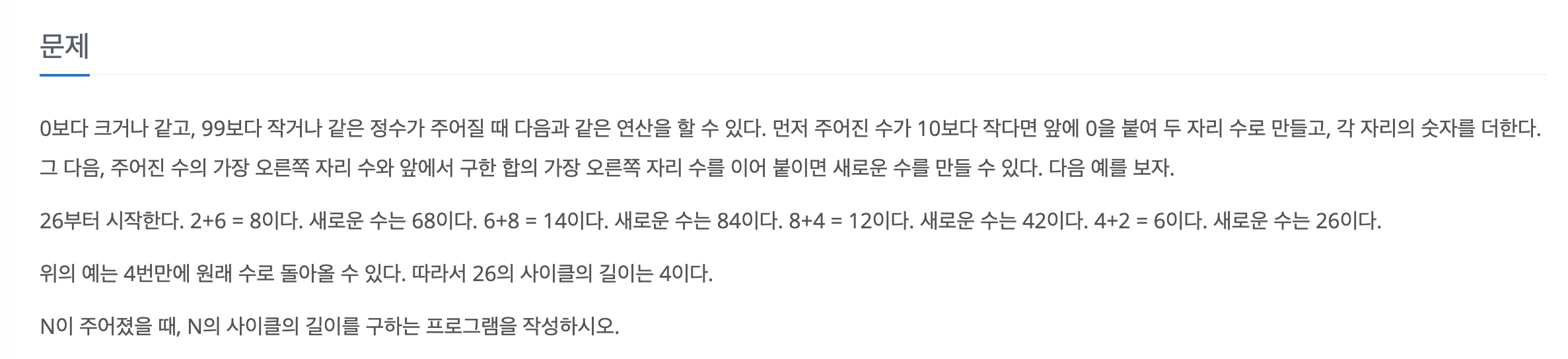 백준 1110번, 더하기사이클 문제 설명