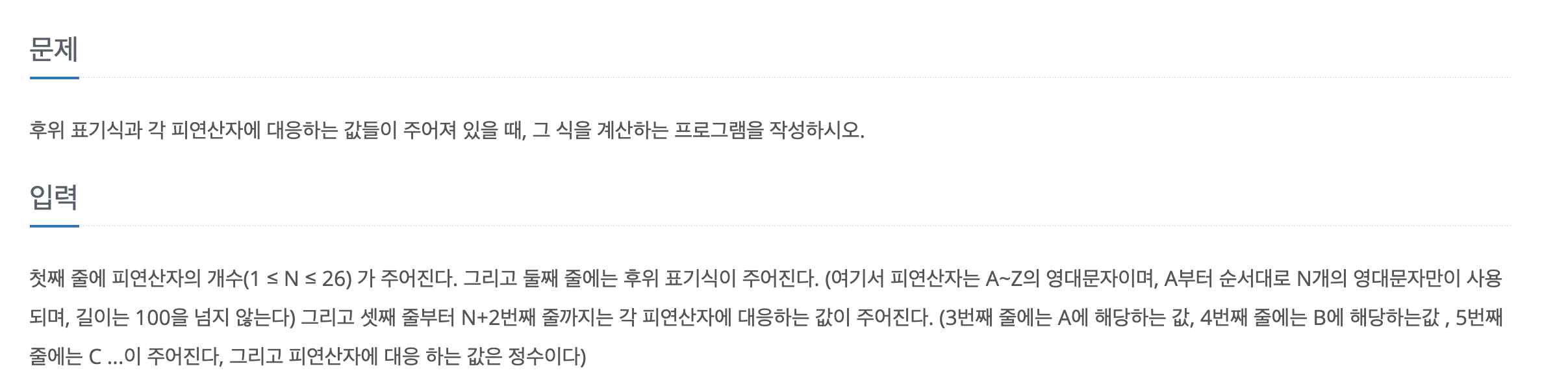백준 1935번, 후위표기식2 문제설명