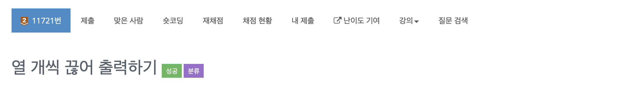 백준 11721 문자열 열 개씩 끊어 출력하기 문제설명