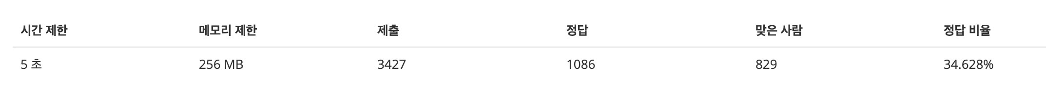 시간제한은 5초입니다. 보통은 1, 2초가 주류인데 특이한 경우네요. 메모리제한은 256MB입니다.