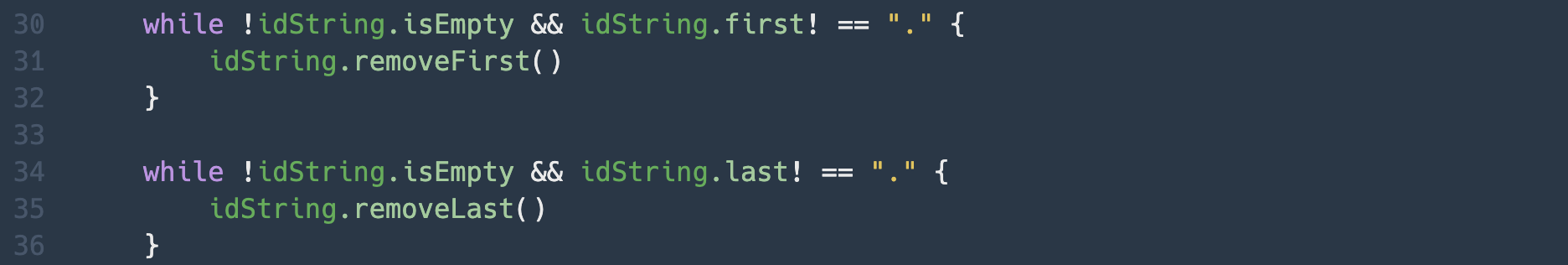 String extension도 하나 추가해줍니다. "." dot이 연속으로 있는 경우, "." 하나만 적용하도록 하는 중복 필터링 메서드입니다.