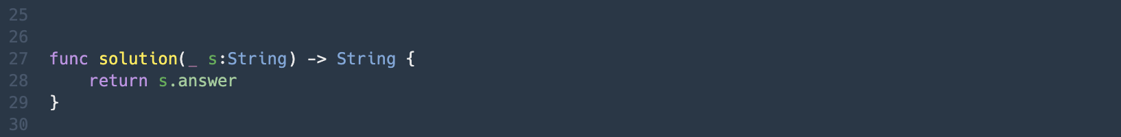 String타입 인자, s를 통해 위 String extension에서 구현한 anwer 변수를 반환시키면 끝입니다.