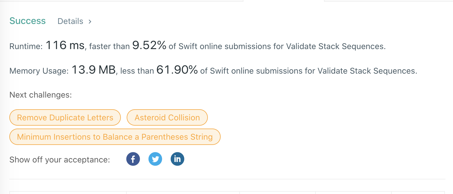 Validate Stack Sequences 릿코드 swift 풀이