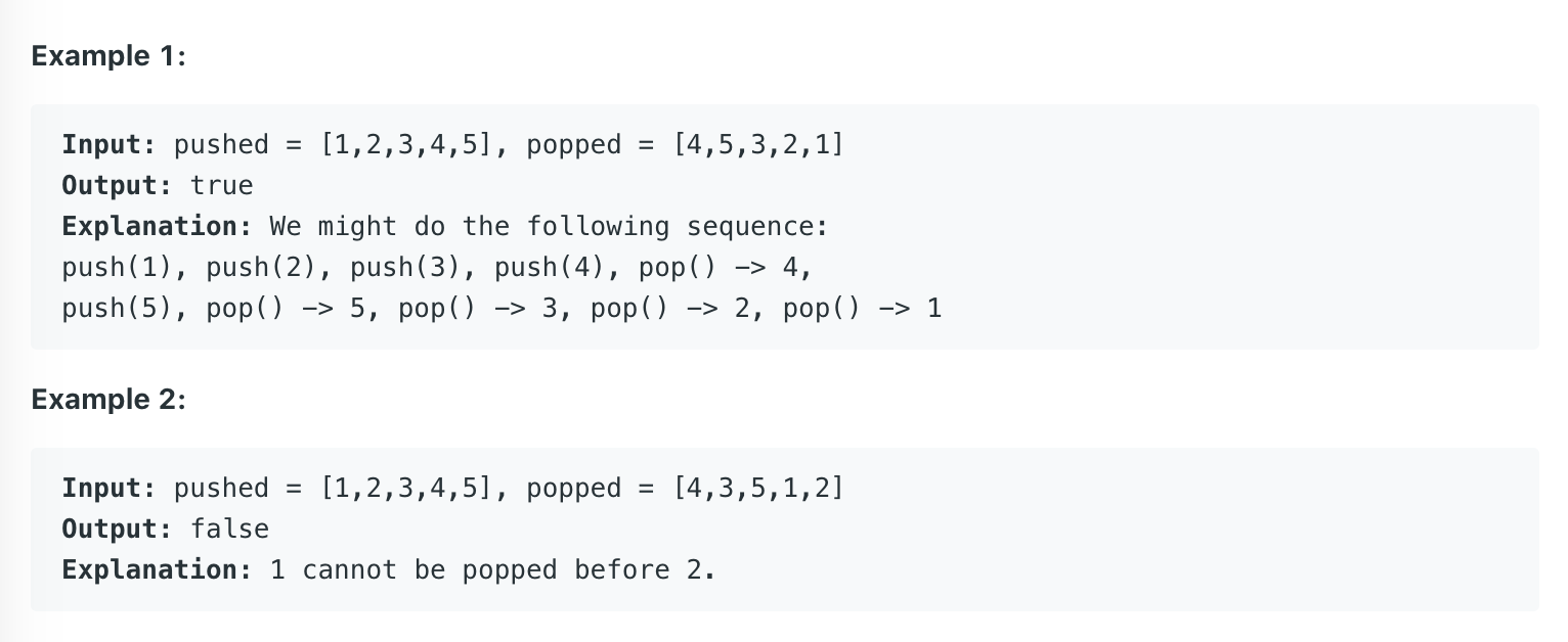 Validate Stack Sequences 릿코드 입출력 예시
