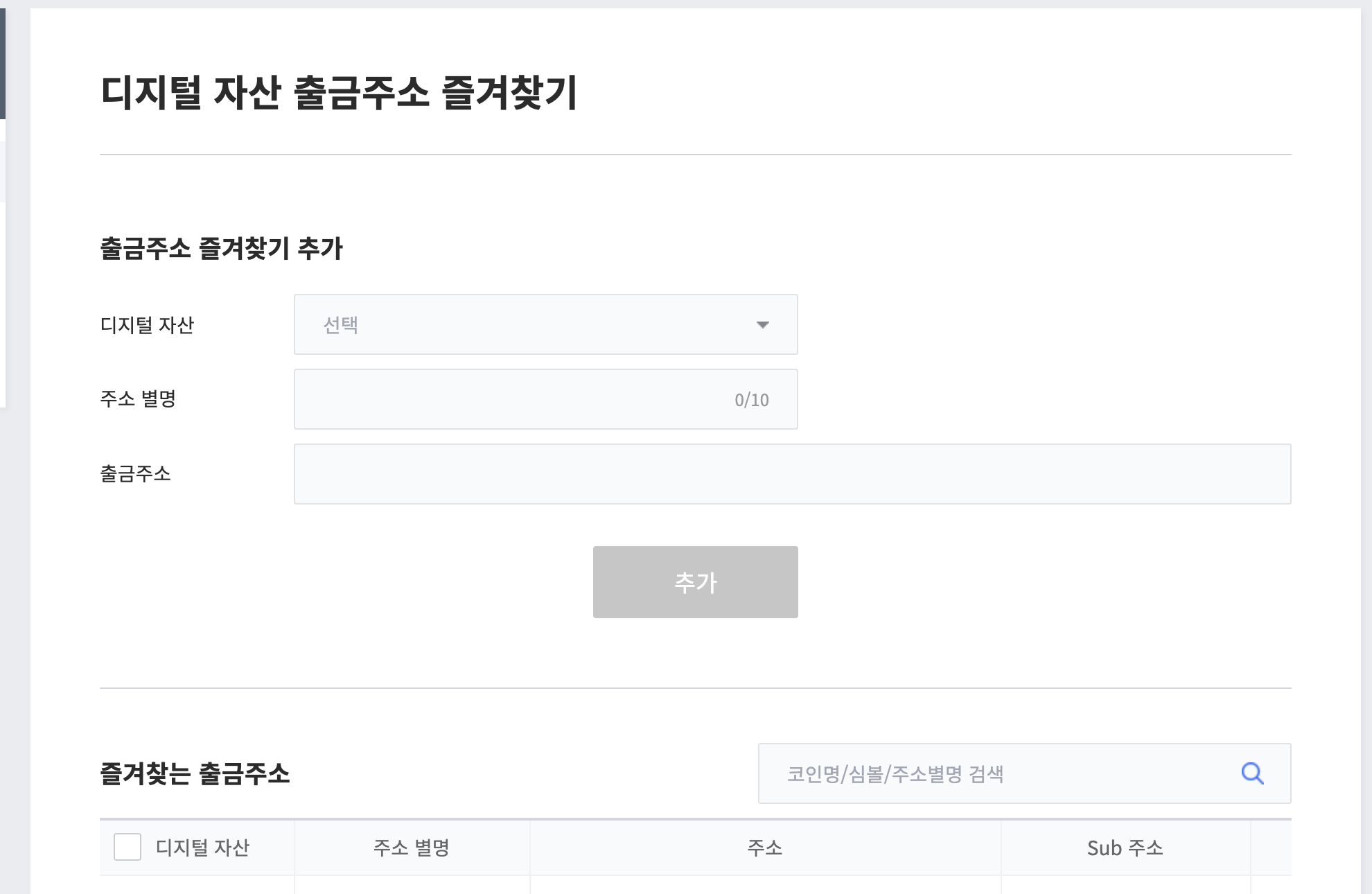 국내 거래소로 업비트 이외에는 사용하지 않습니다. 국내에서 가장 크고, 안전성있는 거래소이기 때문입니다. 업비트에서는 코인 출금시에 활용할 수 있는 즐겨찾기 기능이 존재합니다.