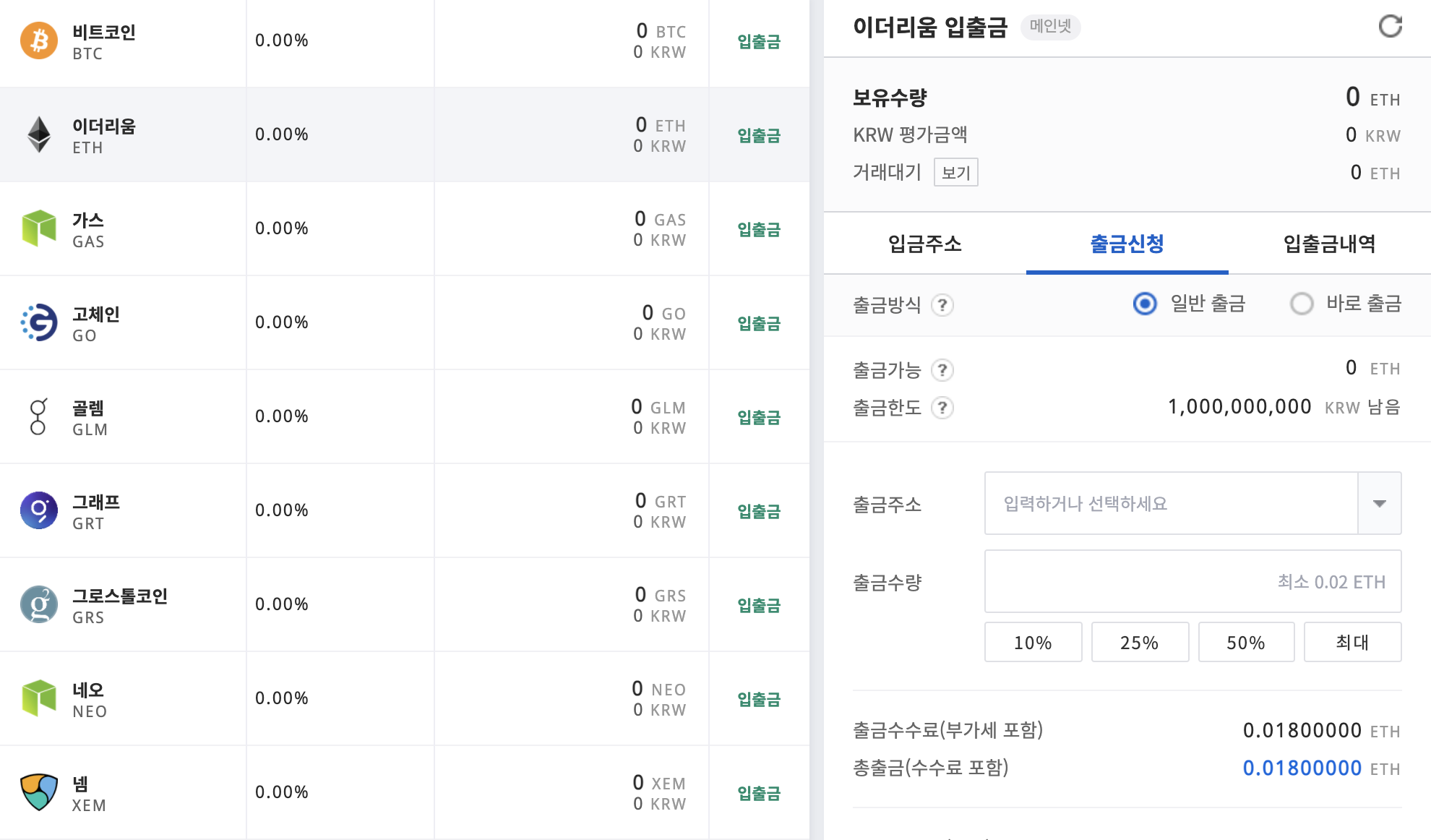 이후에는 등록하신 즐겨찾기 주소를 통해 출금을 진행하시면 됩니다.