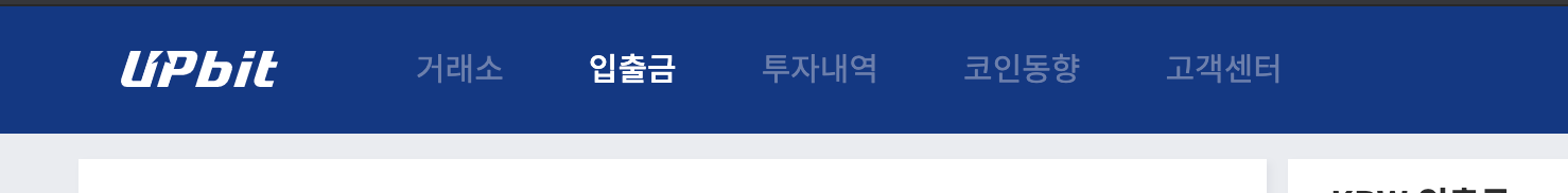 먼저, 업비트에 로그인 하신 후, 입출금 탭을 들어가줍니다.