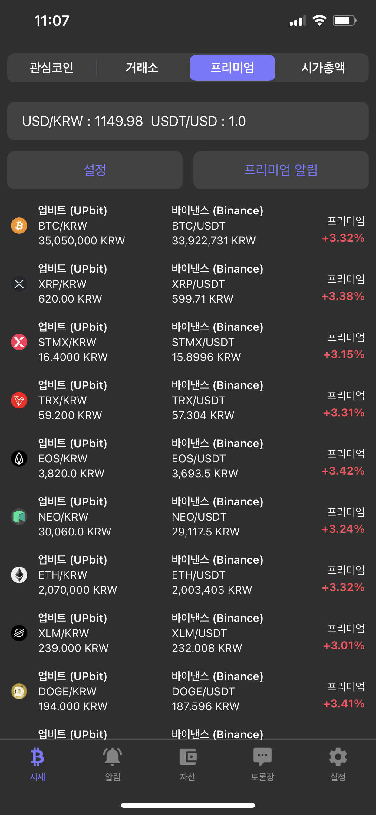 각각의 플랫폼은 김치프리미엄 정보를 산출하는 로직이 다를 수 있습니다. 가령 계산하는 환율값이 살짝 살짝 오차가 있거나, 가격을 판단하는 기준이 다를 수도 있죠.