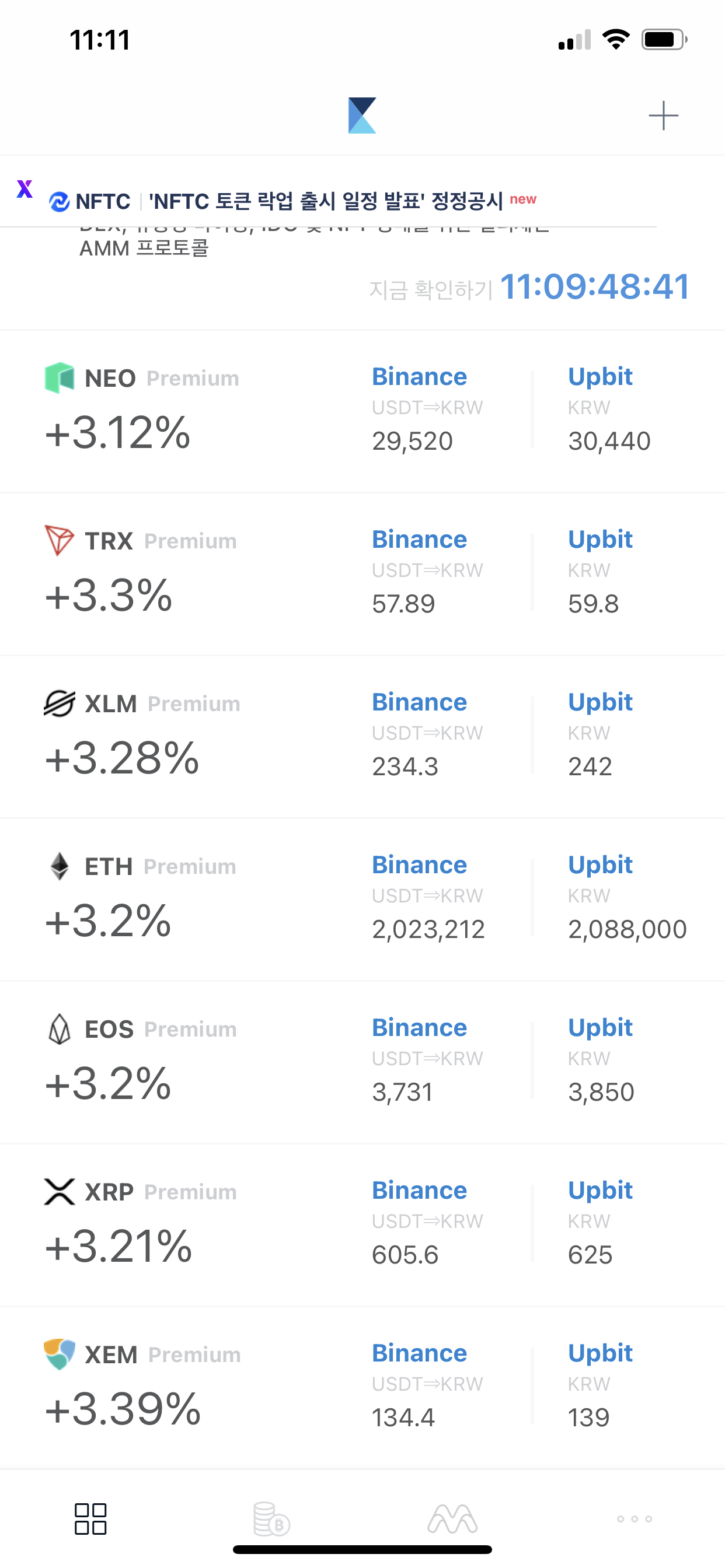 이중에서 Coinnow 라는 앱은 김치프리미엄이 특정 %에 도달했을때 푸시알림을 보내주는 기능까지 제공하는 장점이 있습니다. 또한 빗썸, 업비트등의 국내 거래소와 다양한 해외거래소들의 가상화폐 가격정보를 연동하여 김치프리미엄 정보를 리스트화할 수 있습니다. 위에 소개해드린 앱 모두 김프 차익실현에 자주 사용하는 코인을 등록해서 목록을 실시간으로 확인할 수 있어서 유용한 앱입니다.