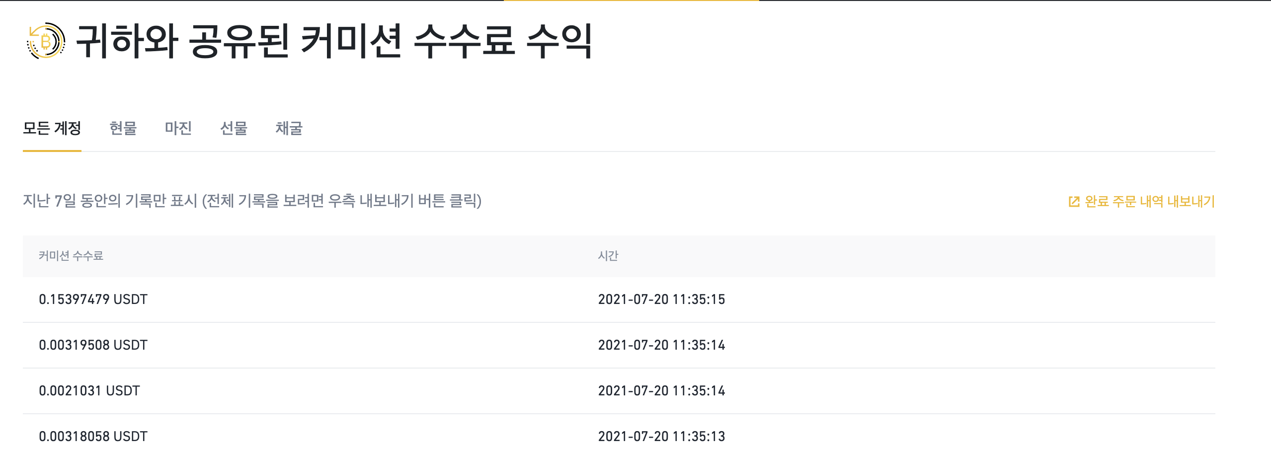 위와 같이 현물 거래 내역과 비교해서 레퍼럴 공유 수익 흭득시간을 대응해서 확인하시면 할인률도 확인하실 수 있어요.