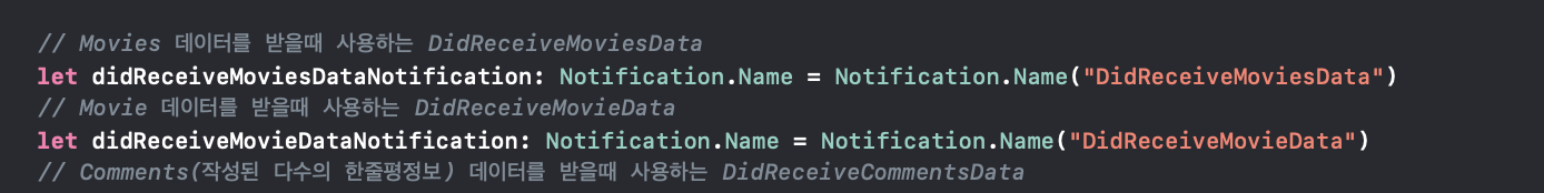 특정 이벤트를 감지하기위해 사용하는 Notification(노티피케이션)은 위와같이 이름을 지정해 둘 수 있습니다.
