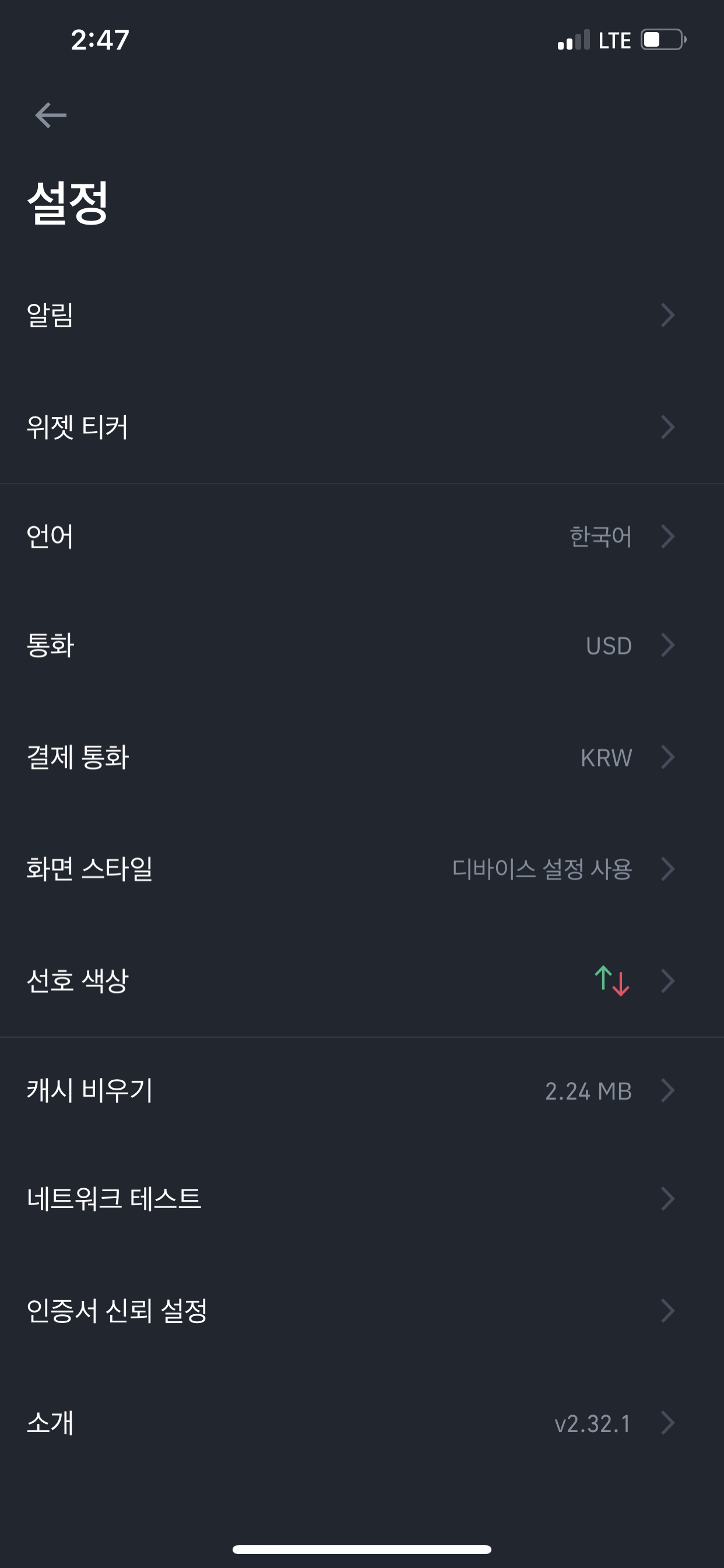 앞서 USD로 표시되던 화면이 원화 기준으로 표시되는 것을 확인하실 수 있습니다.