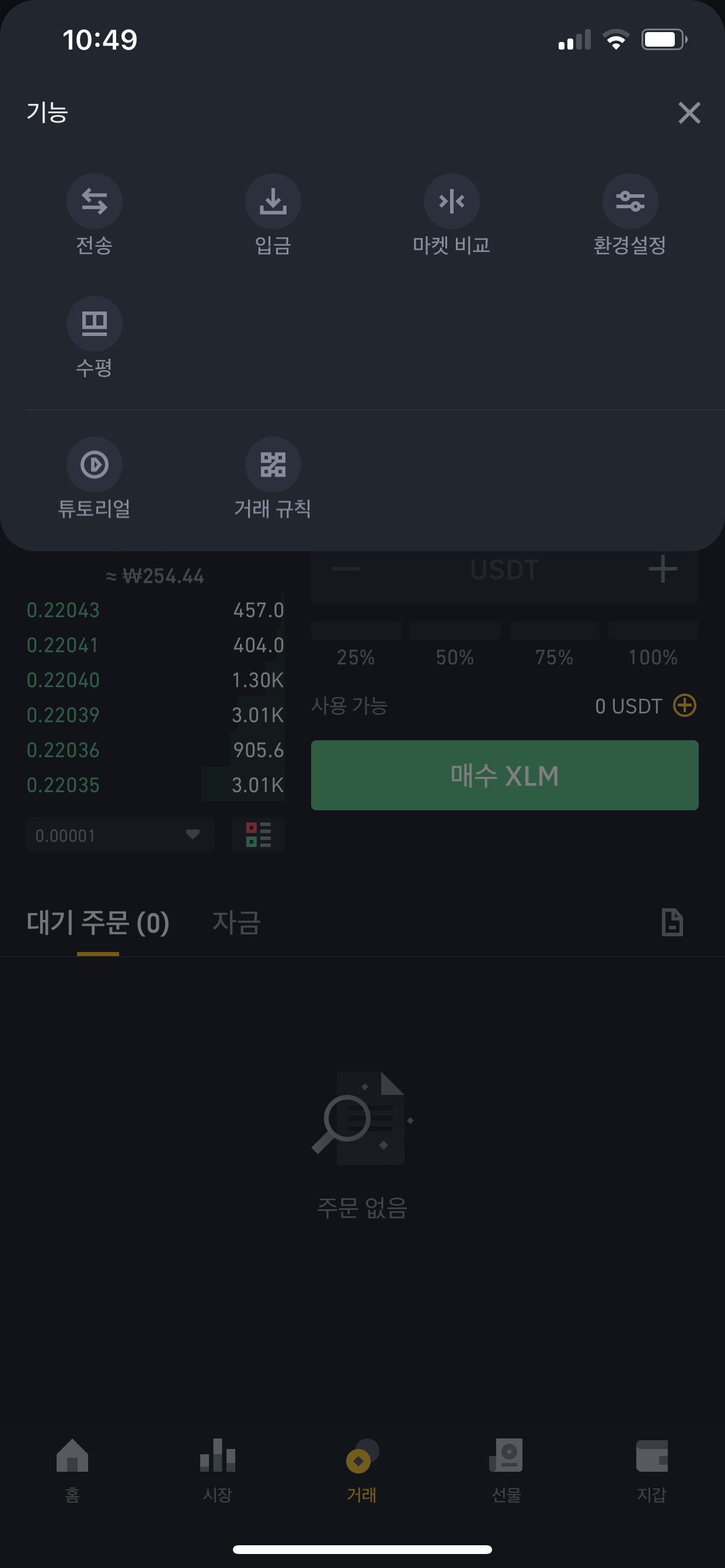 먼저 거래화면 탭 화면에서 우측 상단의 "..." 버튼을 눌러줍니다. 그러면 다양한 메뉴 옵션을 확인하실 수 있습니다.