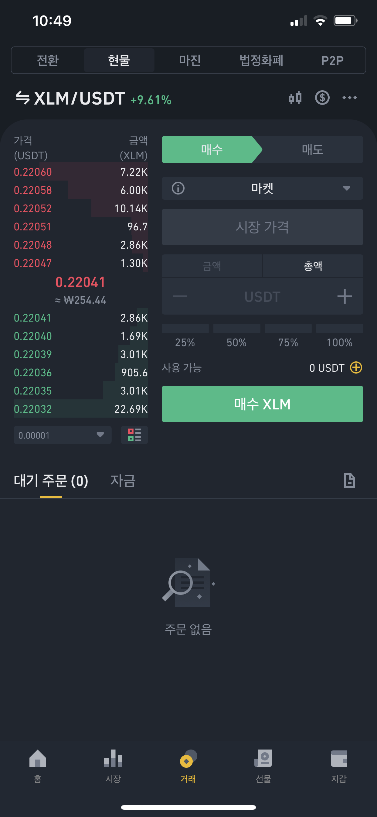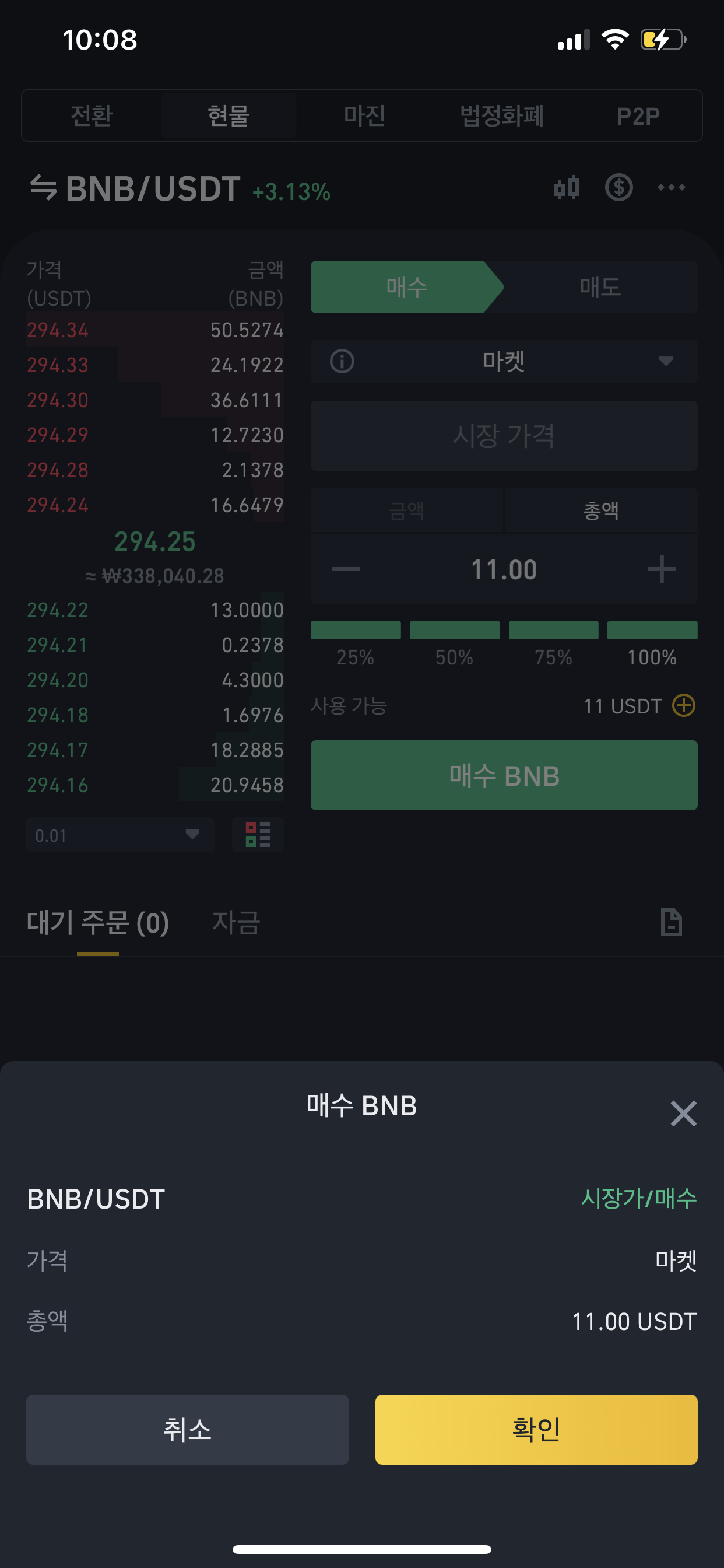 바이낸스 거래소 지정가, 시장가 주문확인팝업 활성화 후 화면