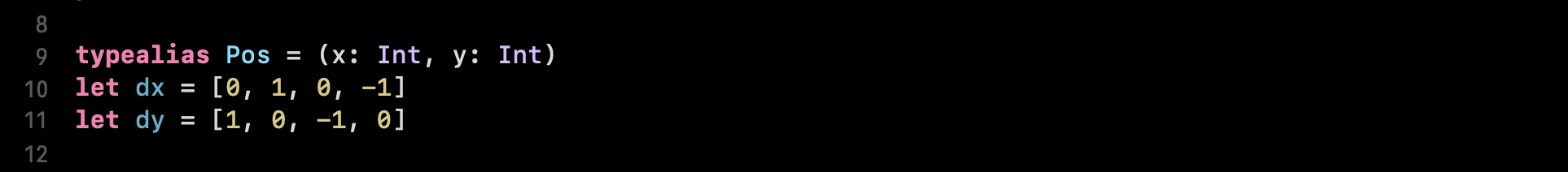 typealias Pos = (x: Int, y: Int)