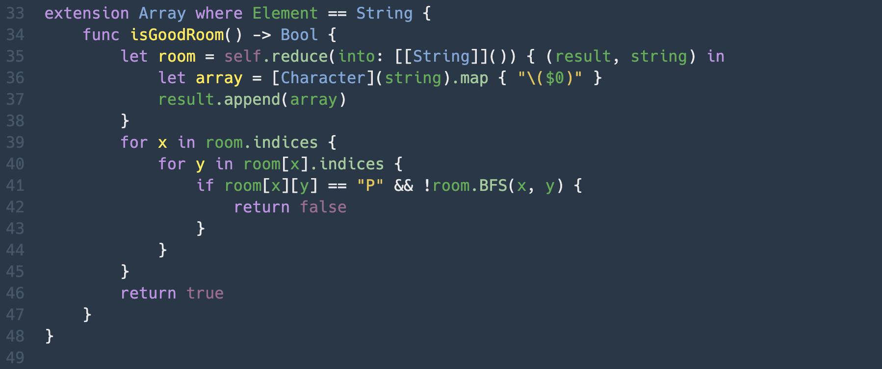 if room[x][y] == "P" && !room.BFS(x, y) {
