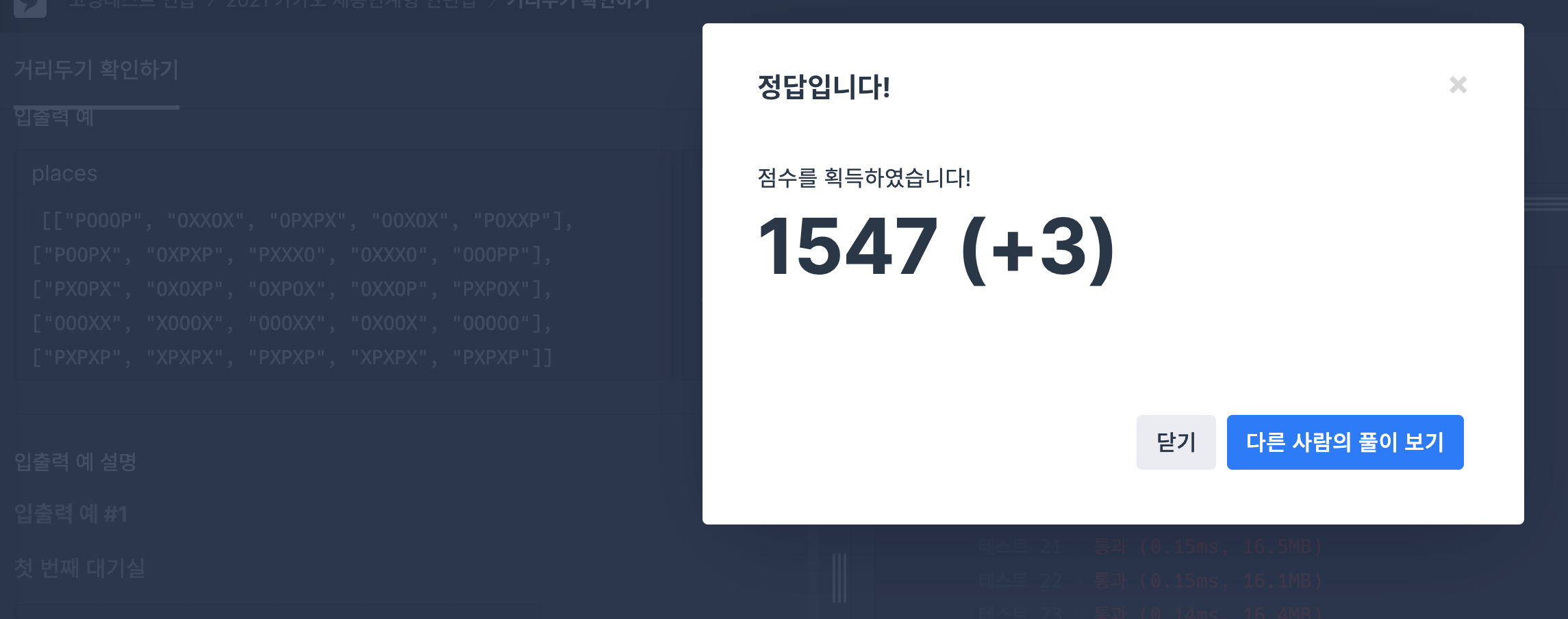 오늘은 카카오인턴 문제 중 거리두기 확인하기 문제를 풀어보겠습니다.