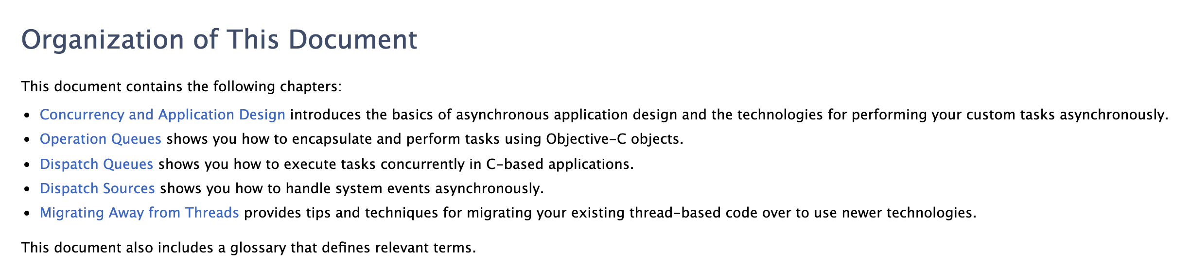 - Migrating Away from Threads : 당신의 현존하는 스레드-기반 코드를 새로운 기술로 이전하기위한 기술과 팁을 제공합니다.