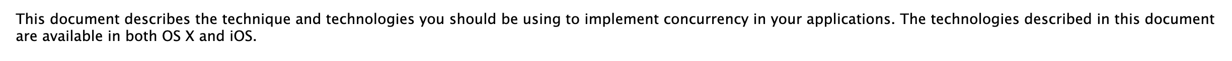 이 문서는 당신의 어플리케이션의 동시성 적용을 위해 꼭 사용해야하는 기술과 기법을 설명합니다. 이 문서에 묘사된 기술은 OS X와 iOS 둘 다 가능합니다.