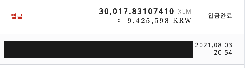 스텔라코인을 20:51분에 바이낸스에서 출금 후, 20:54에 도착했습니다. 결과적으로 스텔라코인의 출금 전송 후 입금까지 약 3~5분이 걸린다고 보면 될 것 같습니다. 스텔라코인은 전송속도도 빠르고, 3번의 Comfirmation만 체크 후 입금 반영되므로 매우 빠르게 입금받을 수 있습니다.