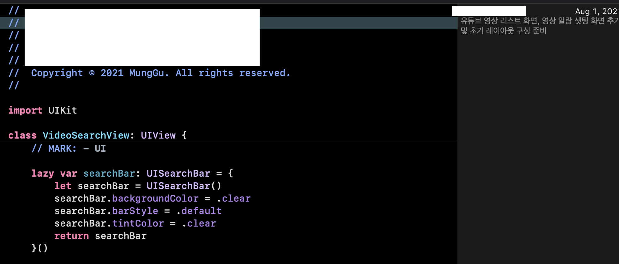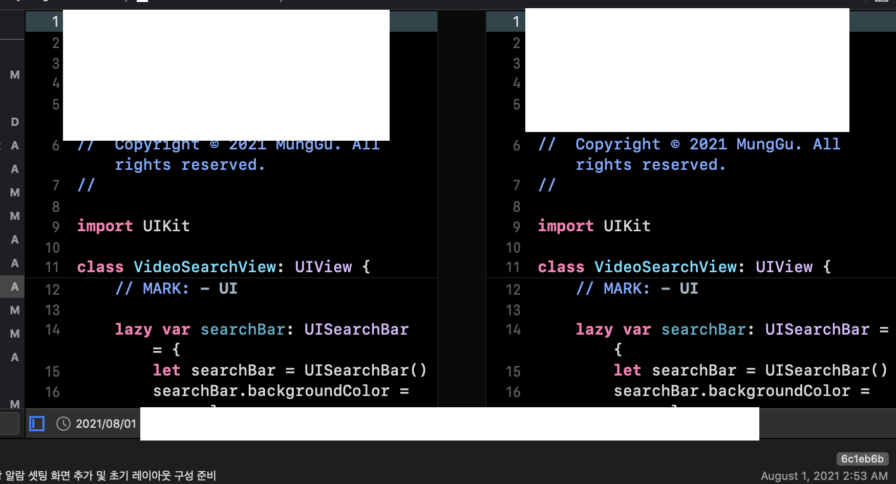 바로 Xcode 단축키를 통해서 이전 커밋기록 및 변경사항을 추적, 확인하는 방법을 알아보겠습니다.