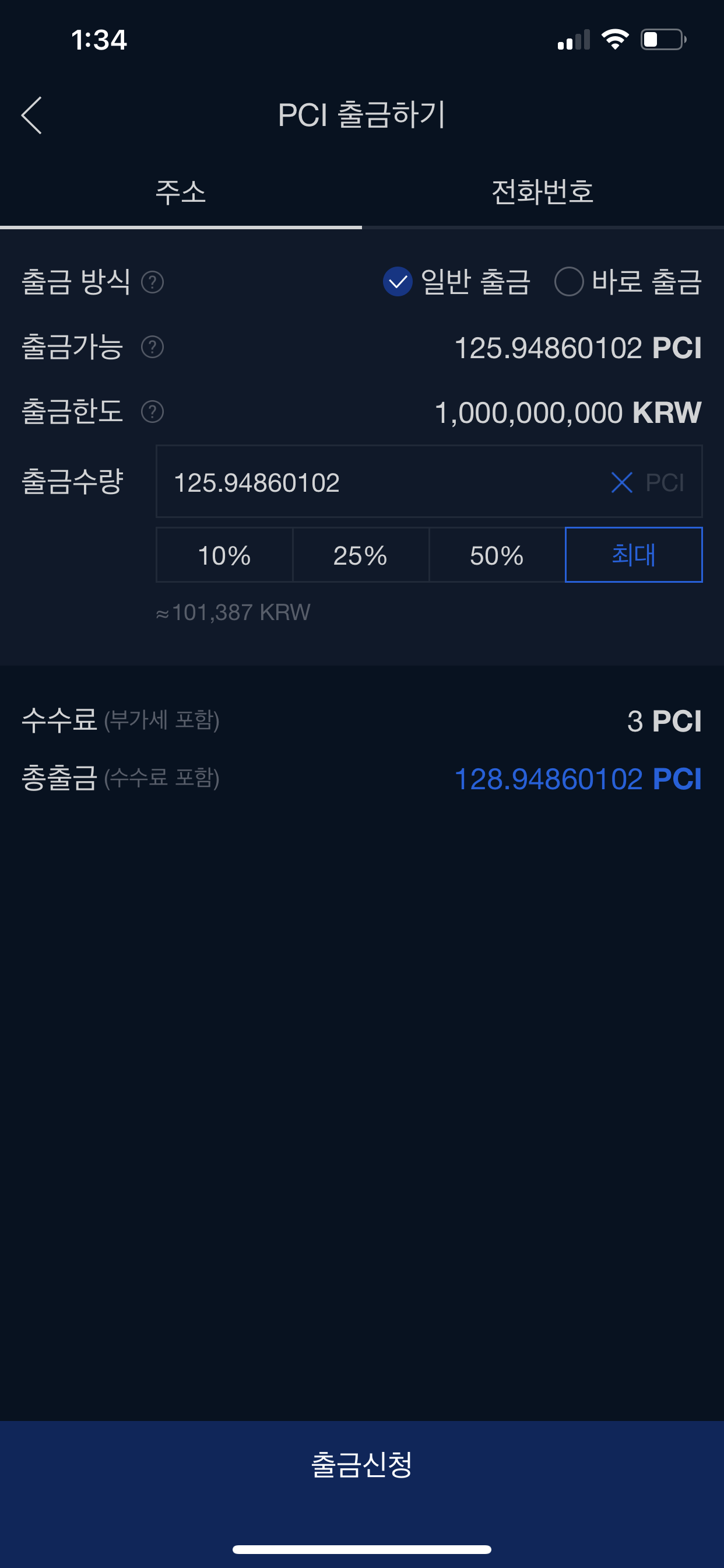 ✓ 페이코인 출금 수수료가 3PCI입니다. 본인의 출금 자산에 비해 수수료가 과다한지, 잘 판단하시고 출금 진행하시기 바랍니다.
