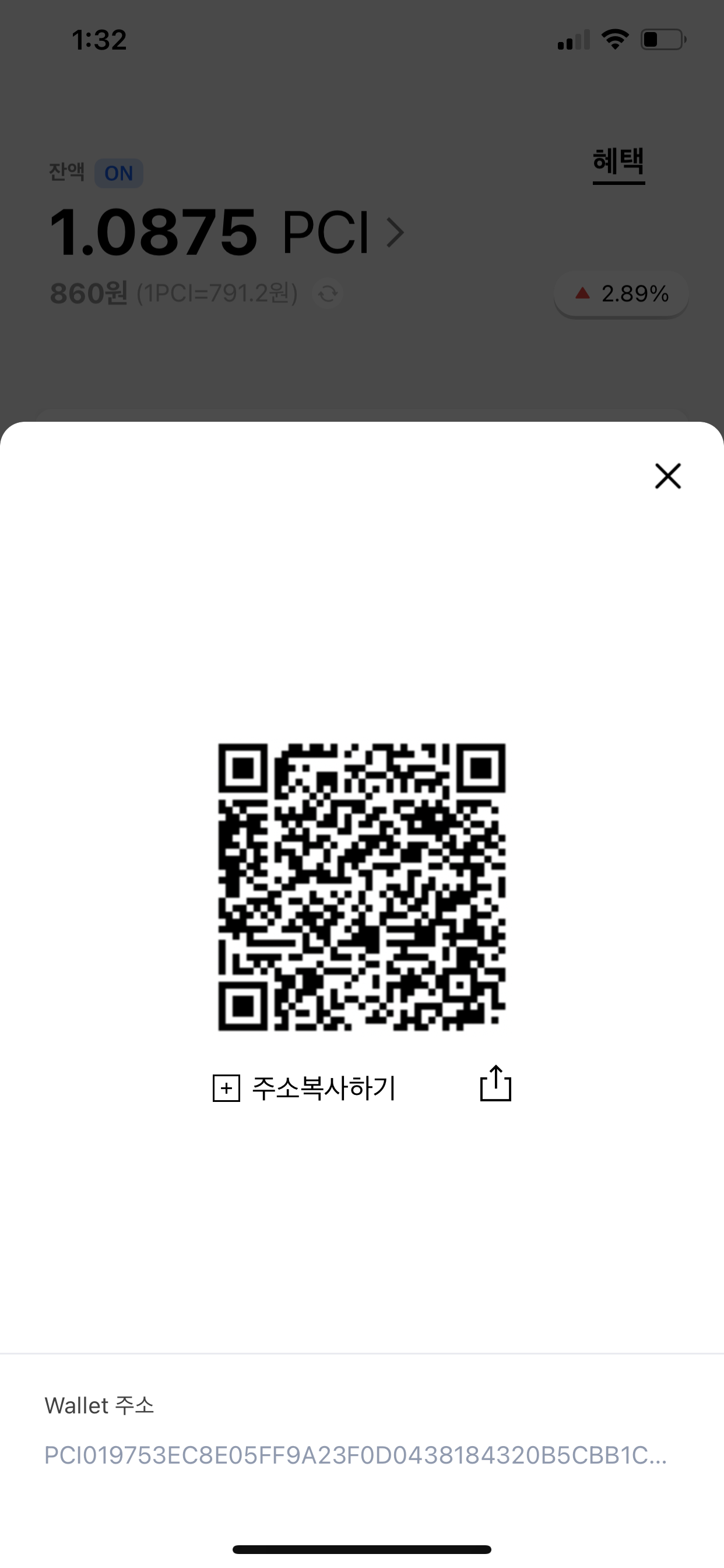2) 페이코인 앱에서 PCI코인 입금주소를 복사한다.